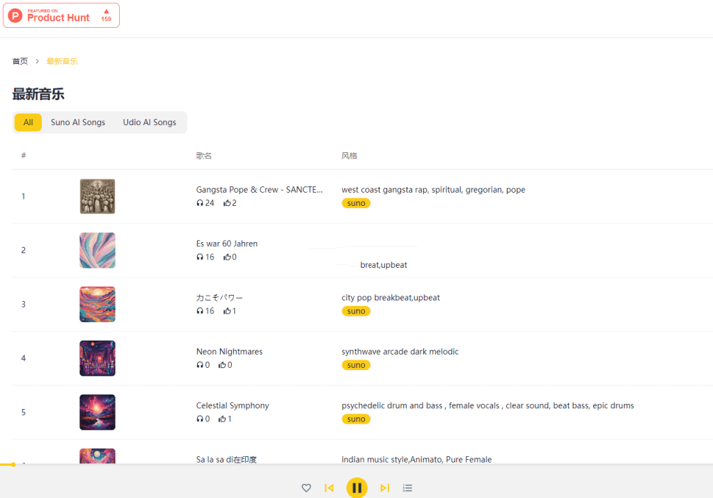 Ai在线音乐播放器,收录超5000+由Ai制作的音乐,真心觉得效果炸裂