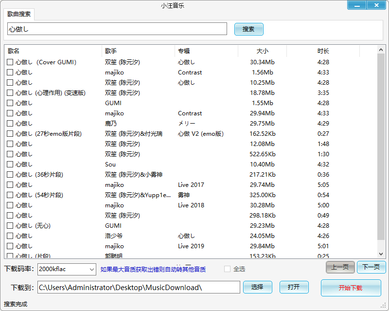 - 下载的音乐格式为无损flac,品质高
