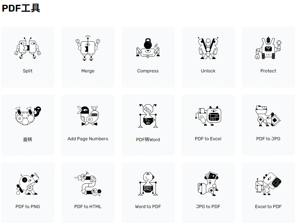- 支持PDF分割、PDF合并、PDF压缩、PDF解密、PDF加密、旋转、PDF加页码、PDF转Word、PDF转Excel等