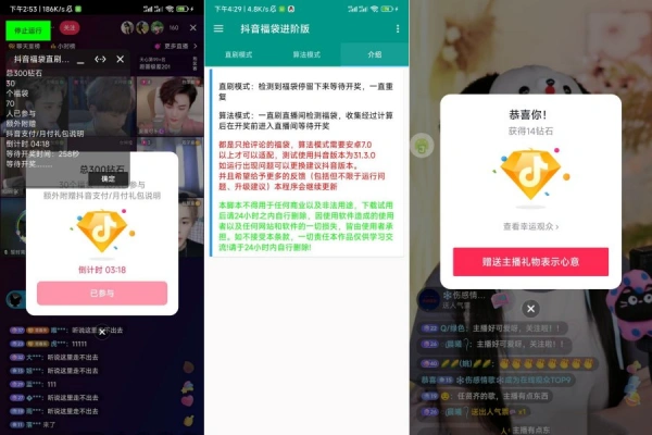 分两个模式,直刷和算法模式,算法可以在更短的时间去开奖更多的福袋,都是只抢评论的福袋,其他福袋一律跳过