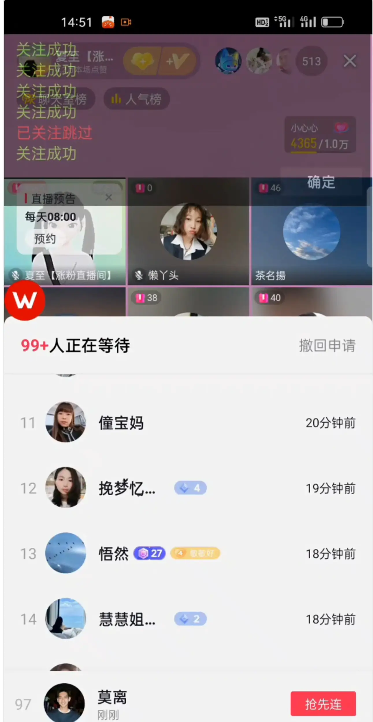 虽然不能立刻涨粉到成千上万,但是这款软件能够通过互粉直播间关注麦序上互粉的人,