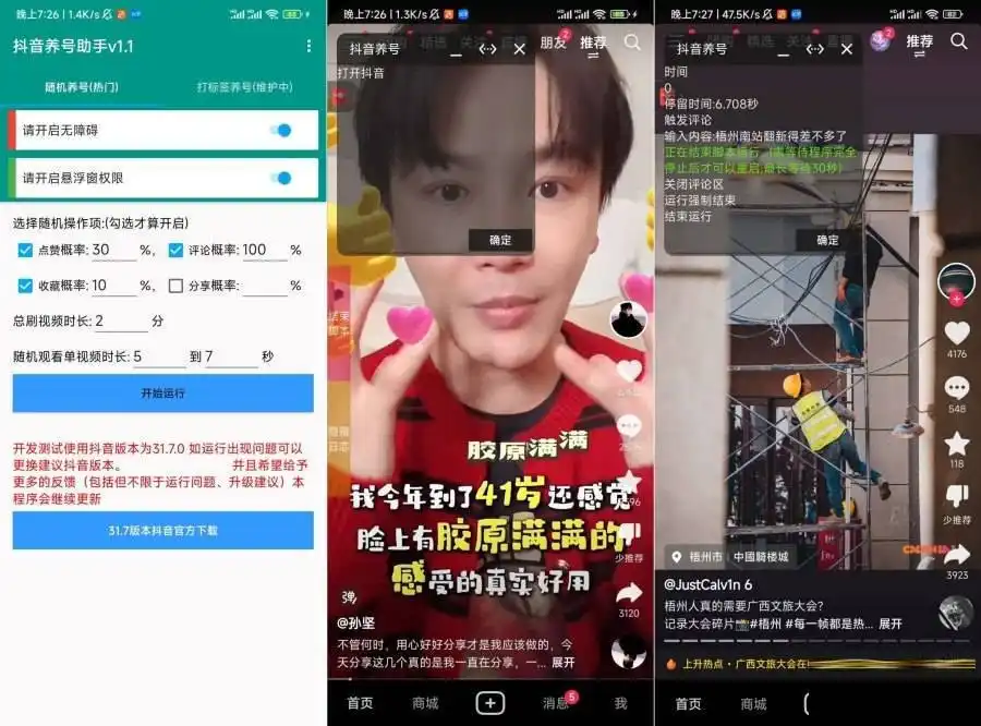 【软件简介】抖音账号是有个权重指标的,但是我们是看不见的,所以要靠这个软件刷权重值。自动刷视频,随机点赞、评论、收藏、分享,每天刷上30分钟,每个视频刷几十秒,账号活跃度完成,账号价值提升,最重要的是再也不用思考评论内容啦,自动采用热门评论,回复率超级高