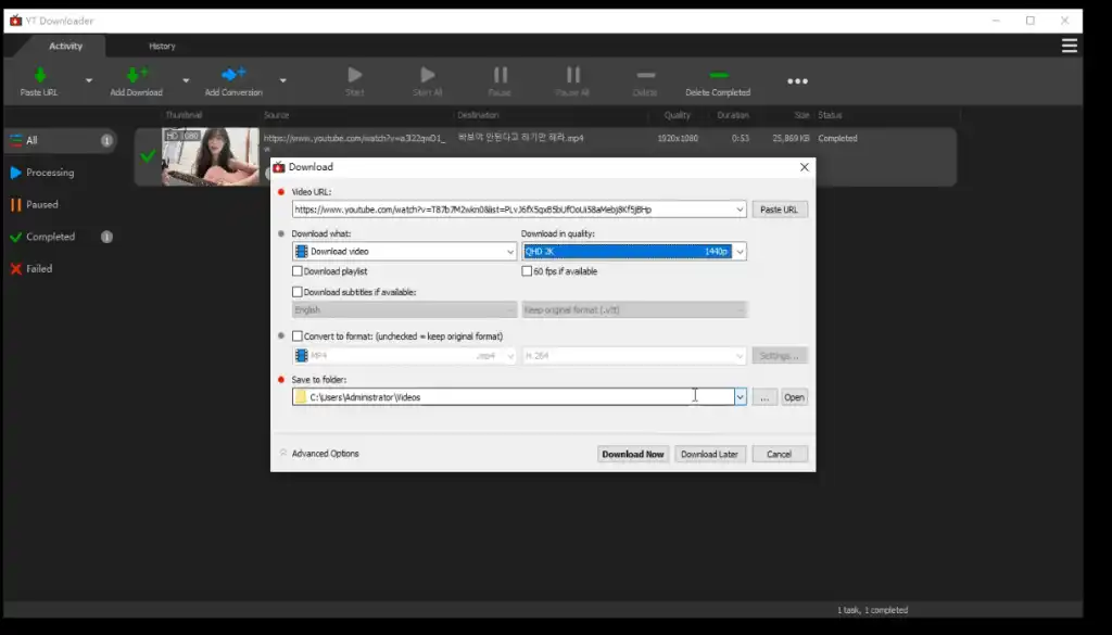 - 支持对油管视频下载,支持批量下载,支持最高8K画质下载
