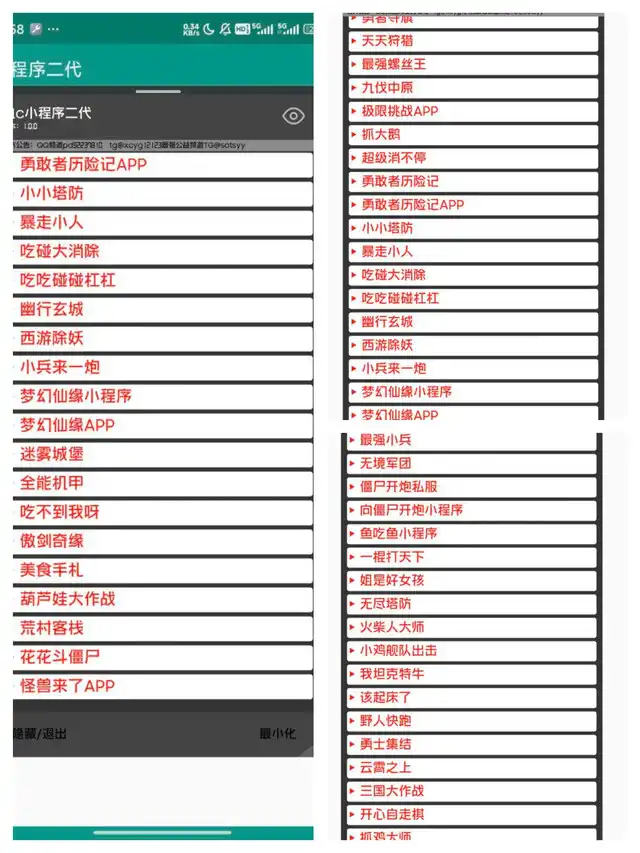 共有几十款游戏 卡密随便输即可 使用方法下载对应的插件 叫小程二代那个软件 在下载网盘内对应游戏包 打开软件 再打开对应游戏包 直接使用即可 微信小程共有三个进程 没效果的话 点一下切换进程