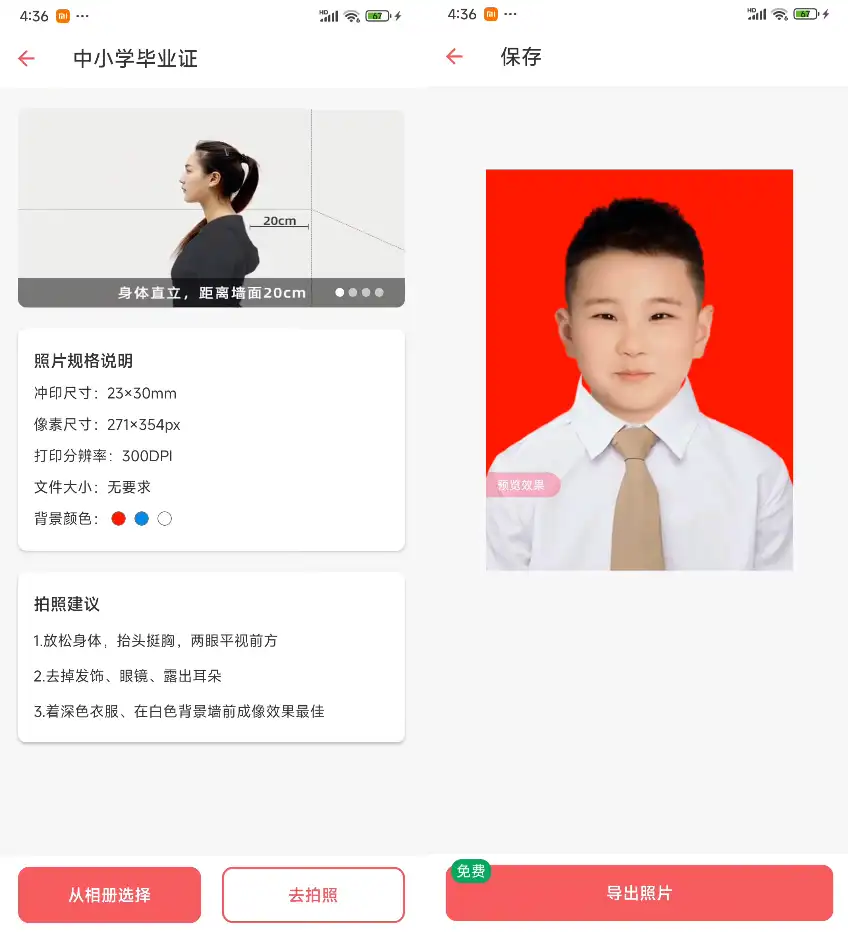 • 手机端免费的证件照app,免费使用,无需登录和注册