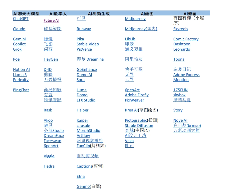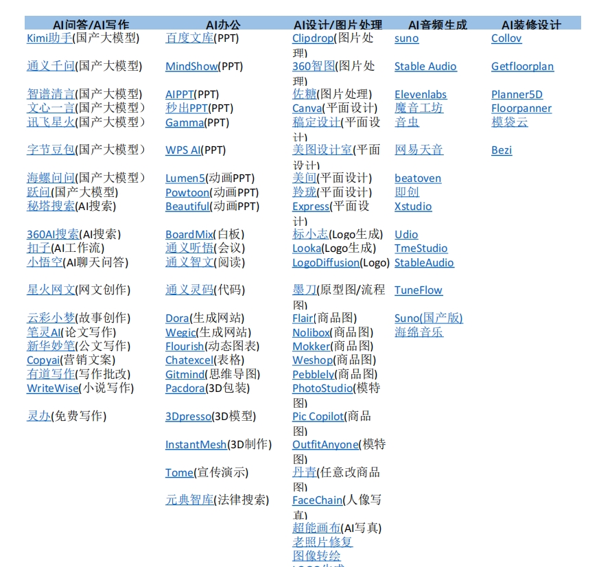AI工具,涵盖办公、设计、文案生成、视频/虚拟人等多领域,侧重于图片、视频、音频、写作等多领域AI应用