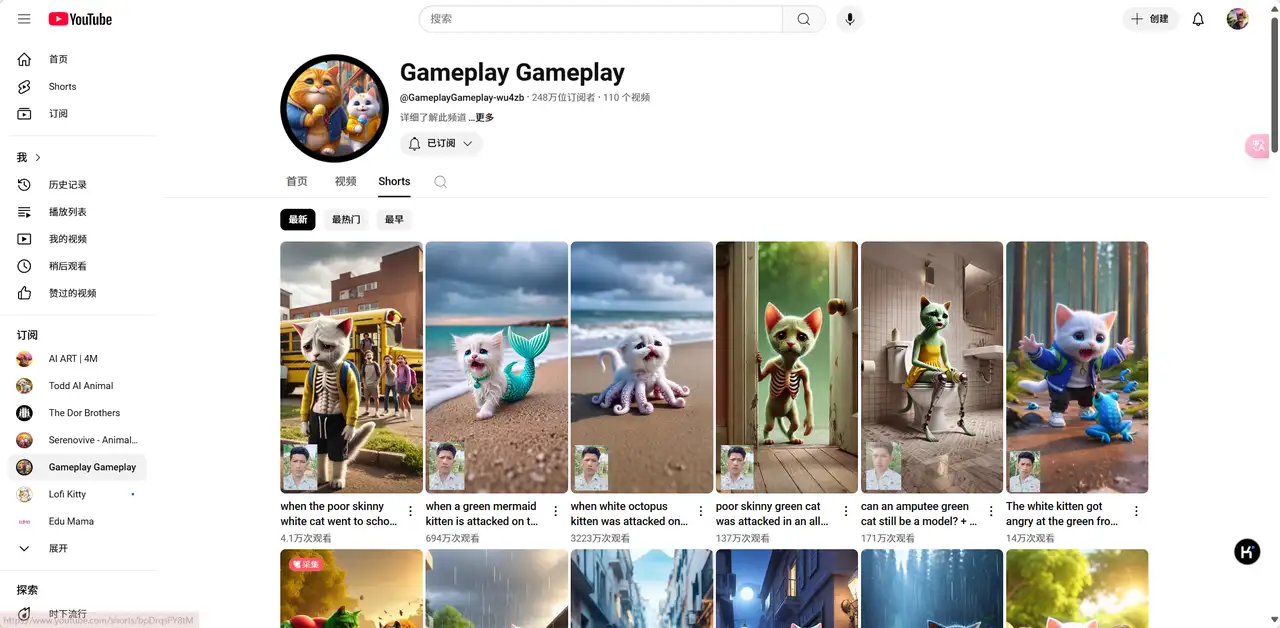 当前已经做了45天的Youtube了,当前627个粉丝,希望年前可以开通ypp。YouTube的门槛确实有点高,需要1000个粉丝,以及4000万short播放量或是1000个小时的长视频播放。我们做的,主要是Youtube shorts。