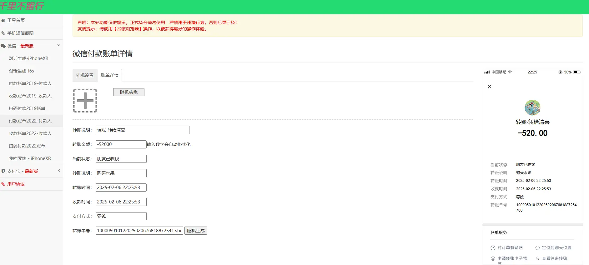 - 🧾 聊天记录截图:生成真实的微信和支付宝对话记录。