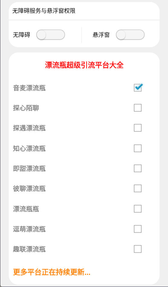 🌟 功能强大:最新多平台漂流瓶全自动超级引流挂机助手,主要针对各个漂流瓶平台的捡瓶子、扔瓶子功能,可用于引流和聊天赚钱。