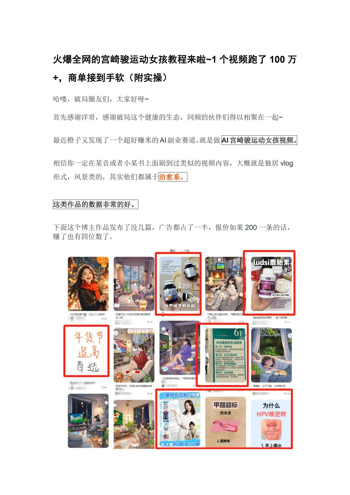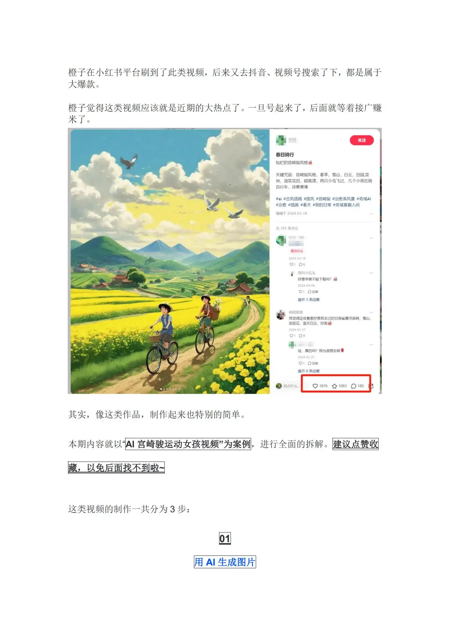 在视频领域,治愈系内容一直深受用户喜爱。最近,一个超有潜力的AI副业不仅如此——制作宫崎骏风格的运动女孩视频,正成为创作者们的新宠!这种风格的视频数据表现亮眼,而且制作流程简单,适合零基础小白入门,甚至能快速获取商单!今天,我们就来揭秘如何用AI制作这种视频,并轻松实现变现