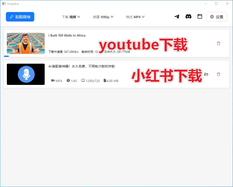 - 多平台支持:无论是B站、小红书,还是YouTube,SnapAny都能轻松应对。
