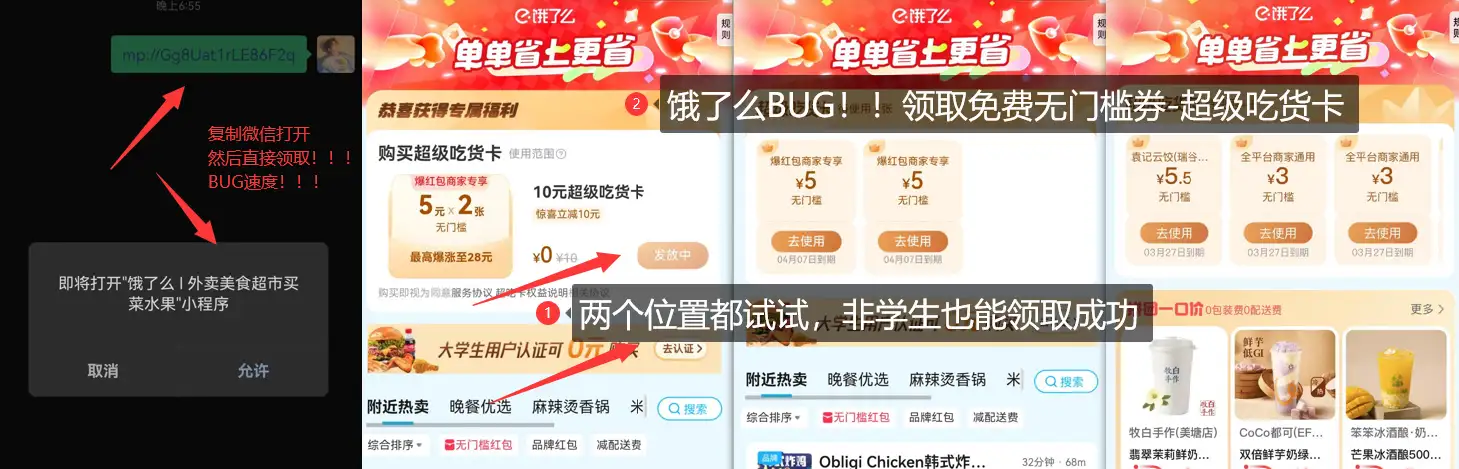 - 使用方式:在饿了么小程序中直接领取,享受美食优惠。