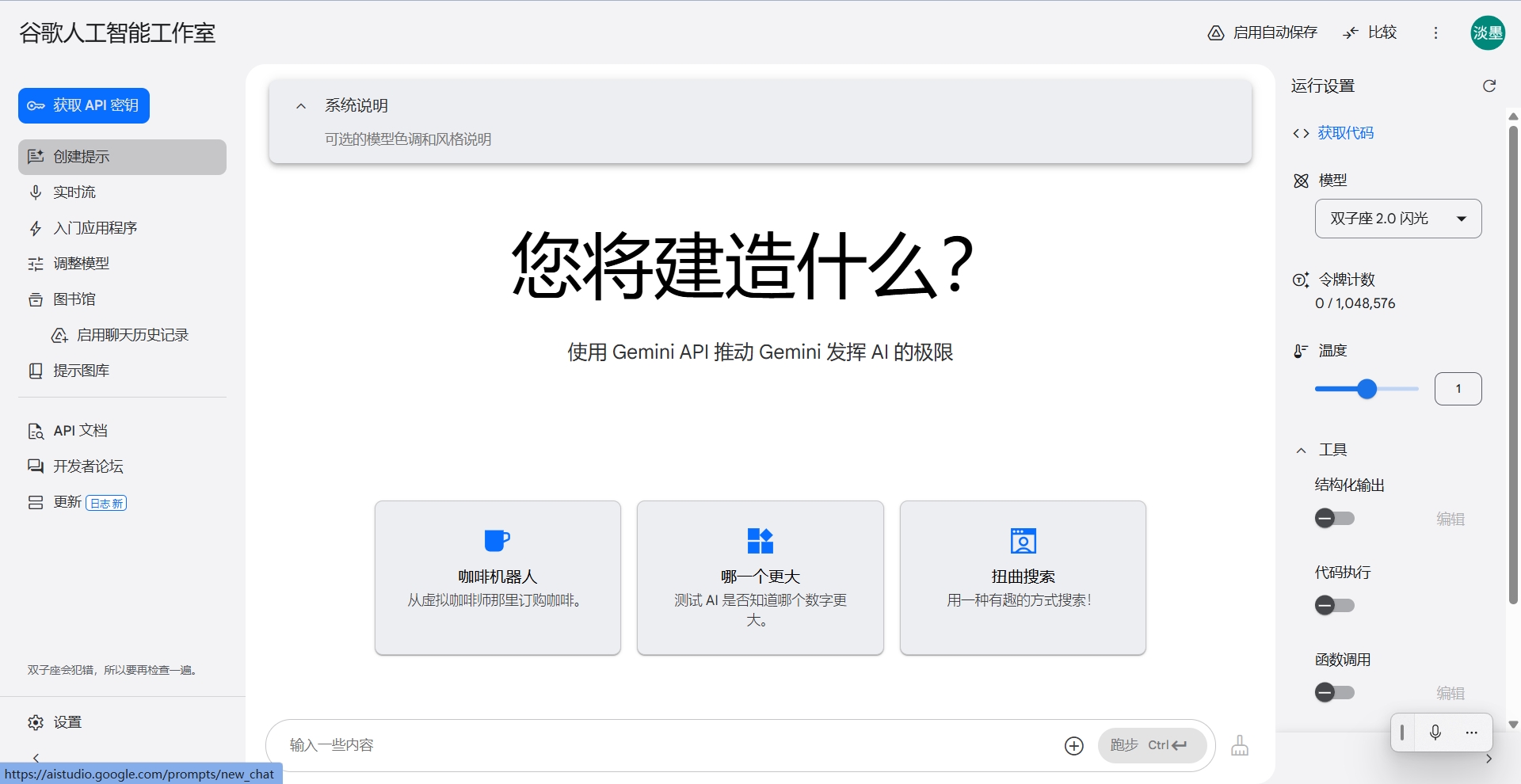 🌐 在线网址: https://aistudio.google.com/prompts/new_chat