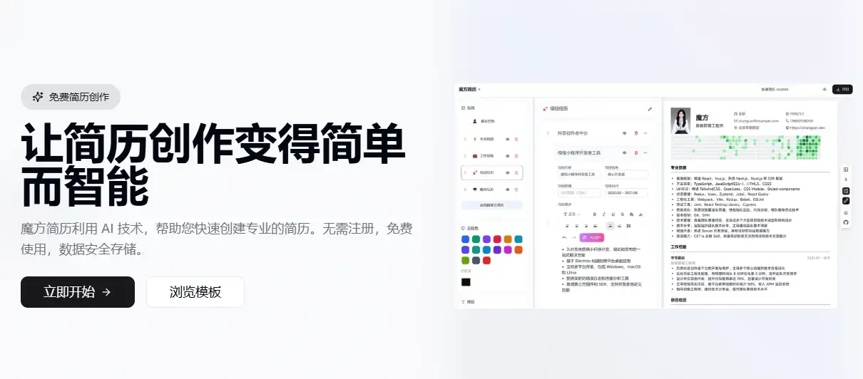 魔方简历 是一款AI驱动的免费简历制作工具,无需注册,数据安全存储,助你10分钟搞定高质量简历,求职无忧!🎯