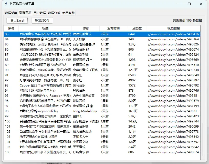 | 数据导出 | 可一键导出为 Excel 或 JSON,支持二次分析与存档 |