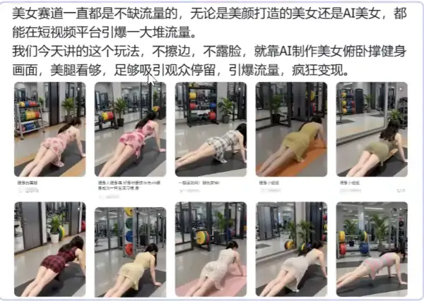 在抖音、小红书等短视频平台,“健身美女”内容始终是流量高地,尤其是搭配AI图像生成+动作模拟技术,无需真人出镜、无风险擦边,却能实现惊人的涨粉与播放成绩。