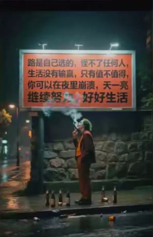 - 场景化配图:AI 生成 “办公室加班场景 + 小丑剪影”,强化文案代入感
