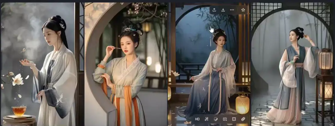 利用 DeepSeek 进行提示词优化是关键一步。输入 “新中式古风美女写真” 之类的指令,就能获得包含场景、服饰、光影等丰富细节的专业提示词,像 “身着浅绿纱裙的古典女子,手持油纸伞漫步于青砖黛瓦的江南小巷,晨光透过竹帘洒在发间,画面呈现电影级质感”。接着,把这些提示词导入即梦 AI 等工具,用图生图功能固定人物面部特征,替换服装和场景,生成高清古风写真图片。