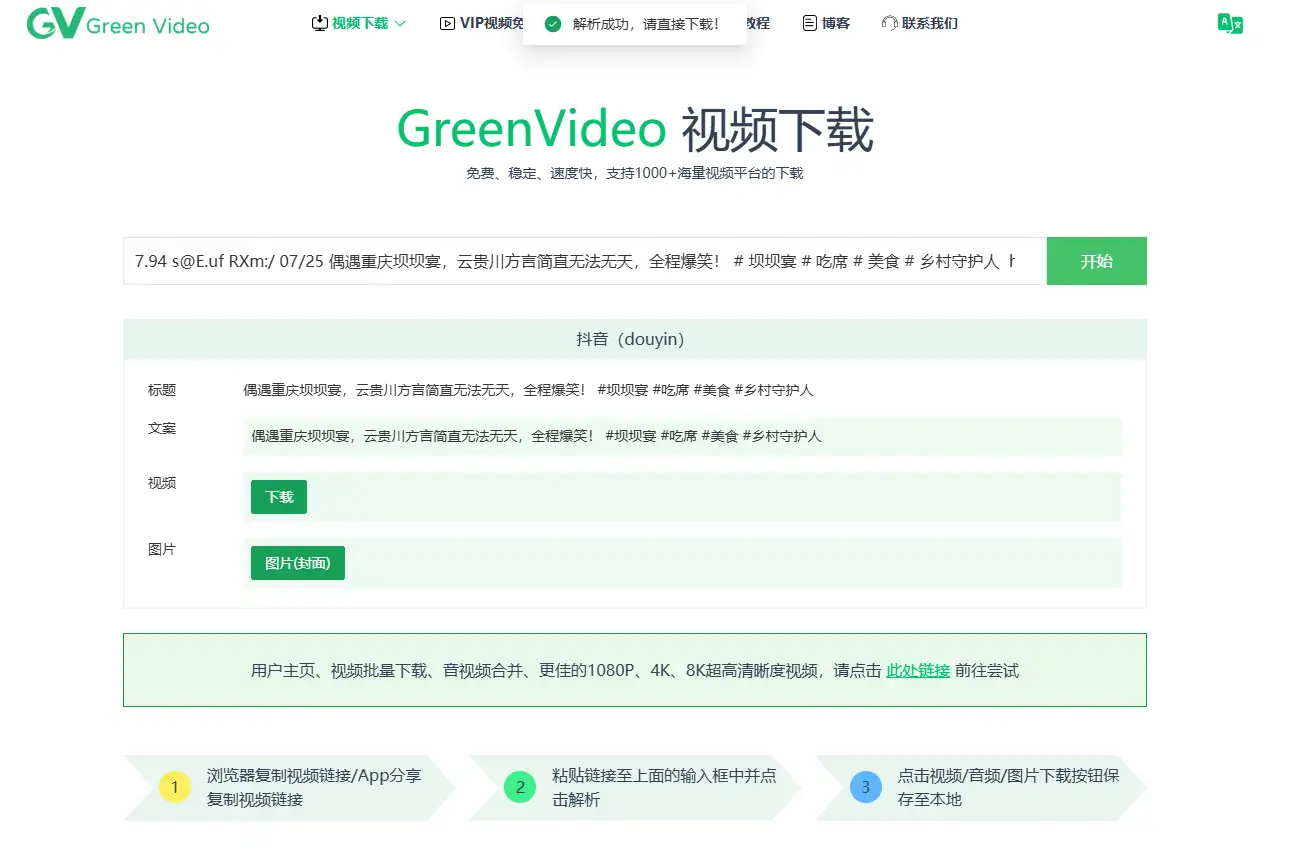 在数字媒体蓬勃发展的当下,视频下载需求日益旺盛。GreenVideo 作为一款创新型在线视频解析平台,凭借独特的技术优势脱颖而出。