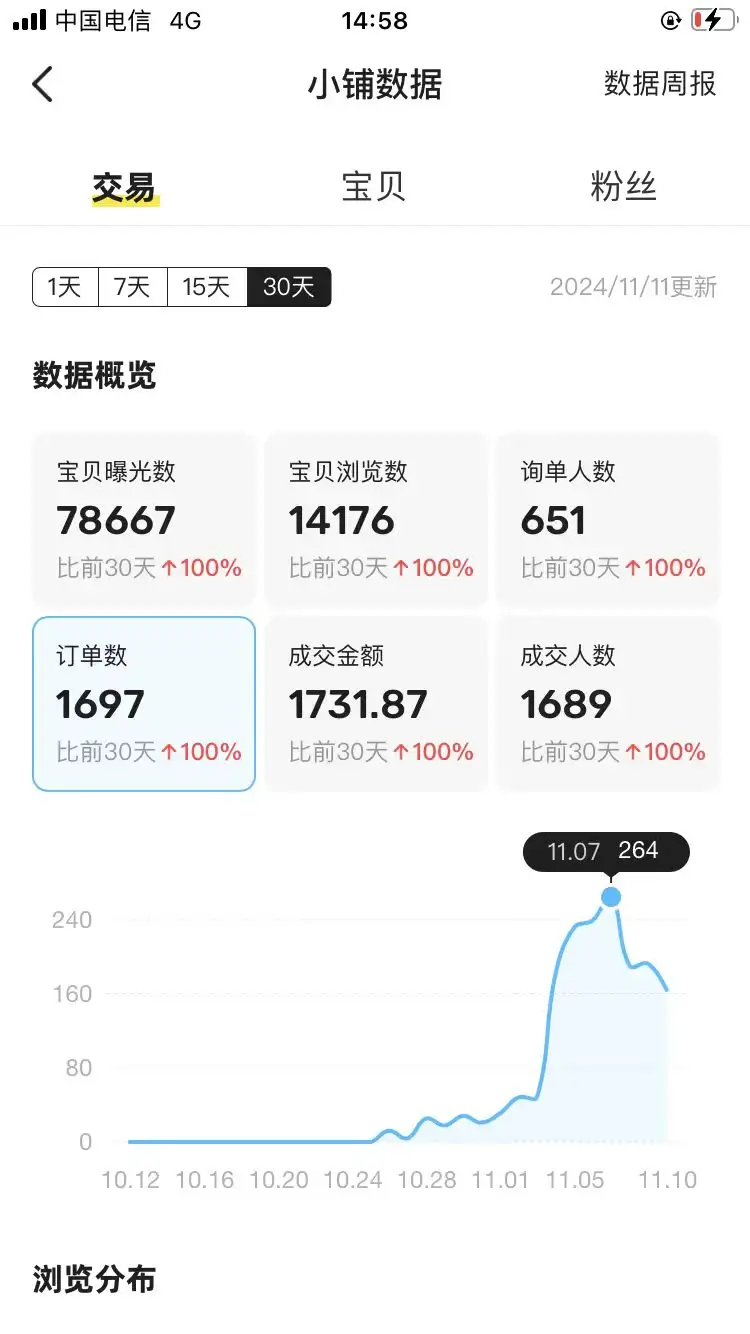 2024 年 10 月 11 日,乐乐开启新号测试之旅。截至 11 月 11 日,新号取得了令人瞩目的成绩:总成交 1697 单,单日最高曝光达 7 万次,单日最高订单量 276 单,日收益可达 267 元。该新号聚焦考试资料细分领域,目前店铺已上架 40 + 虚拟商品,充分验证了虚拟产品在闲鱼平台的爆发潜力。