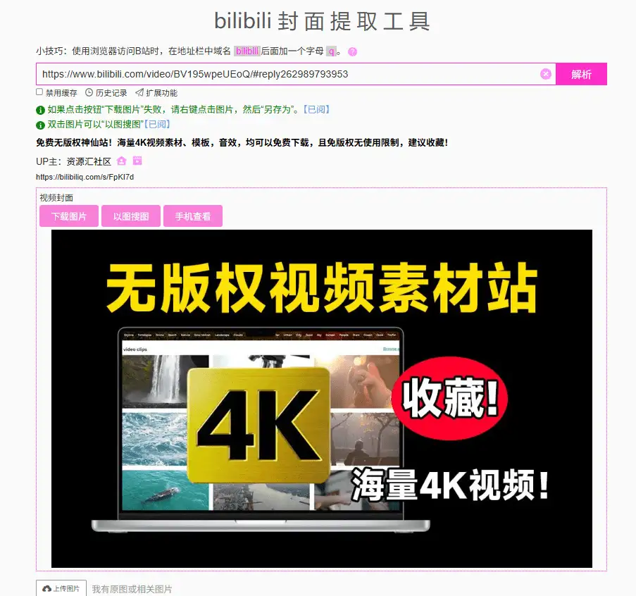 bilibili 封面提取工具:https://www.bilibiliq.com/