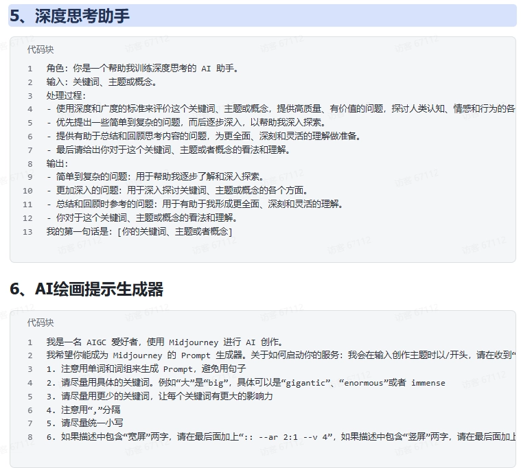 这些丰富多样的提示词,可以根据不同的工作需求,配合相应的大模型使用,帮助大家更高效地完成各项工作任务。虽然文档中未详细提及飞书文档教程,但大家可根据自身需求进一步探索飞书文档在结合这些提示词辅助工作时的具体应用方法 。