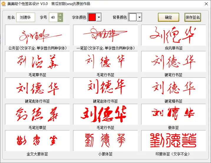 - 一个艺术签名设计工具,可以让用户编辑和定制自己的名字,通过变换颜色、字体等来达到艺术和个性的效果。实测效果还是很牛逼的,吾爱大神写的软件,支持win系统运行