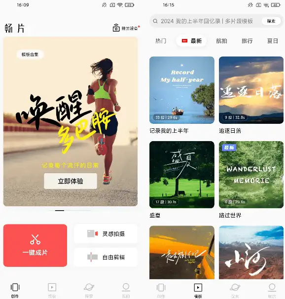 - 提供 AI 一键成片、海量专属视频模板和拍摄教学等,堪称你的随身拍剪策划师。