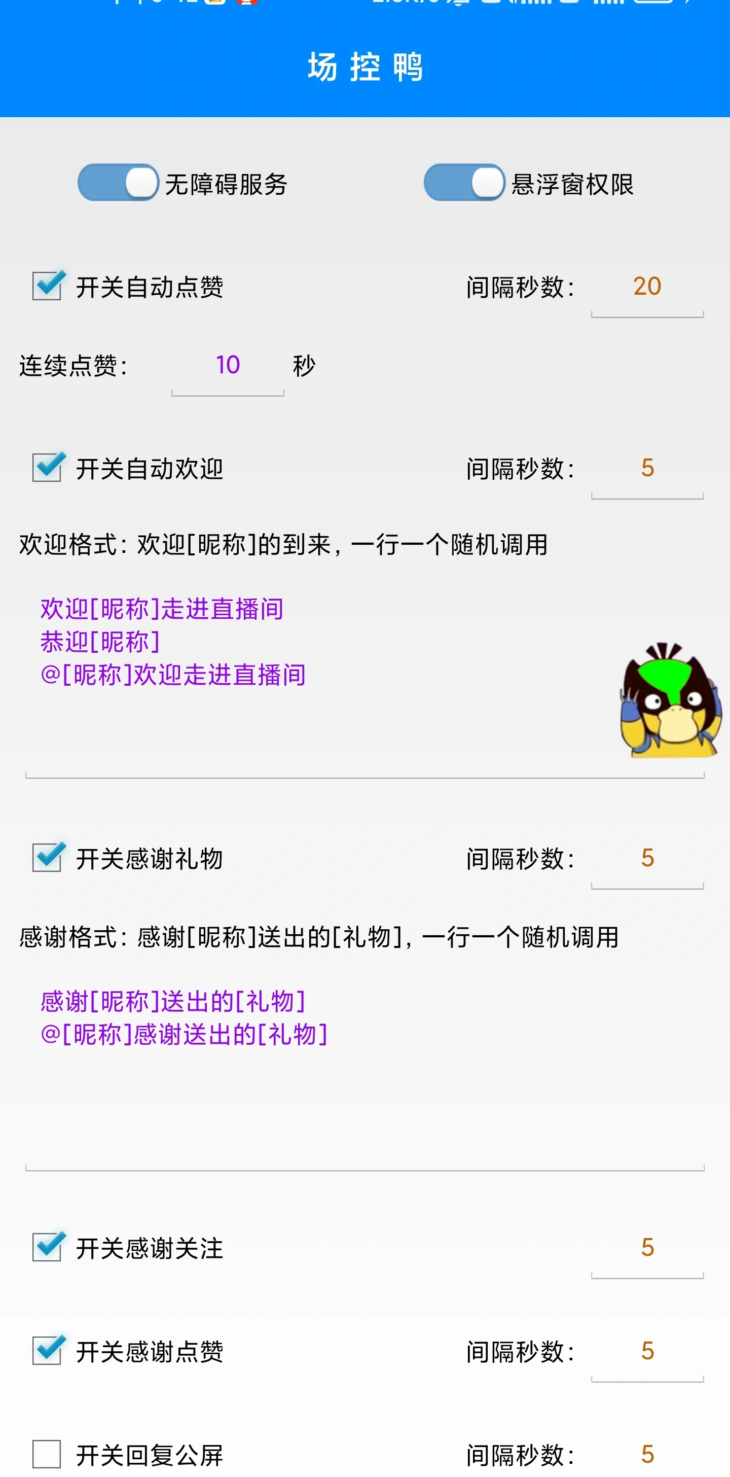 - 用途:全自动场控互动,自动欢迎,自提问聊天,自动感谢,自动回复公屏,等智能化,