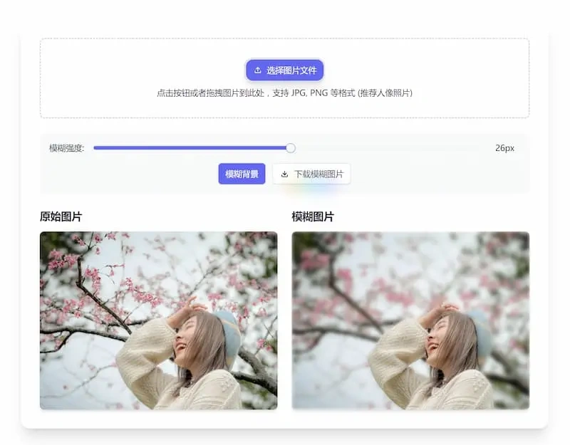 • 操作简单:上传、选择模糊强度、下载即可完成。