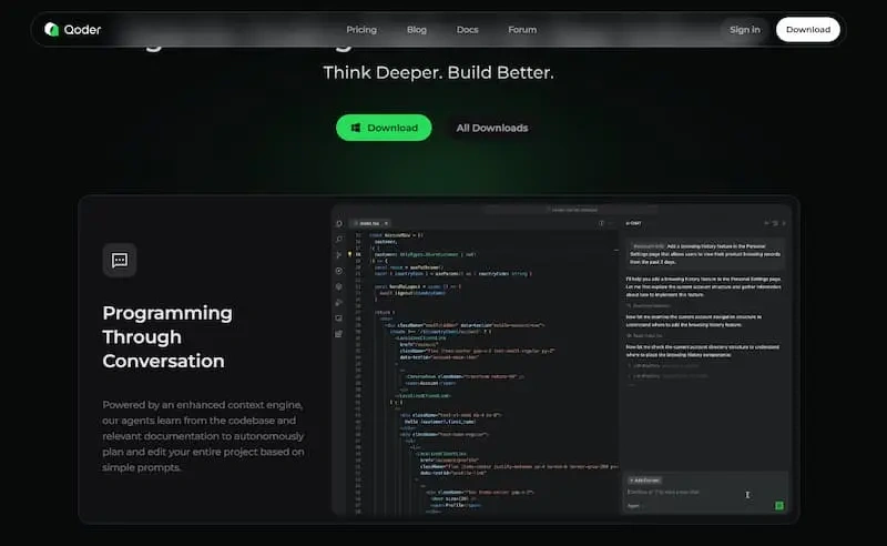 当前位置: 首页全部分类在线工具正文 在 2025 年,AI 编程工具 Qoder 凭借 Claude4 模型,为开发者提供了前所未有的便利。与传统编程工具不同,Qoder 更像是一位 “读过你全部代码、记得你全部习惯、能跨系统替你干活” 的资深同事,极大地提升了开发效率。 工具特点: 智能代码生成基于 Claude4 模型,Qoder 能够智能生成代码,减少手动编写的工作量。 跨系统支持支持多种编程语言和开发环境,满足不同开发者的需求。 个性化助手通过学习开发者的编程习惯,Qoder 能够提供个性化的代码建议和优化方案。 免费使用开发者可以免费使用 Qoder 的所有功能,无需额外付费。 使用场景: 个人开发者:快速生成代码,提升开发效率。 团队协作:统一代码风格,减少沟通成本。 跨平台开发:支持多种编程语言和开发环境,简化跨平台开发流程。 使用建议: 注册账号:访问 Qoder 官网,注册并登录账号。 选择模型:选择 Claude4 模型,开始智能代码生成。 优化代码:根据 Qoder 的建议,优化代码结构和性能。 在线工具 https://qoder.com/ 声明:本站所有文章,如无特殊说明或标注,均为本站原创发布。任何个人或组织,在未征得本站同意时,禁止复制、盗用、采集、发布本站内容到任何网站、书籍等各类媒体平台。如若本站内容侵犯了原著者的合法权益,可联系我们进行处理。 admin会员 收藏 链接