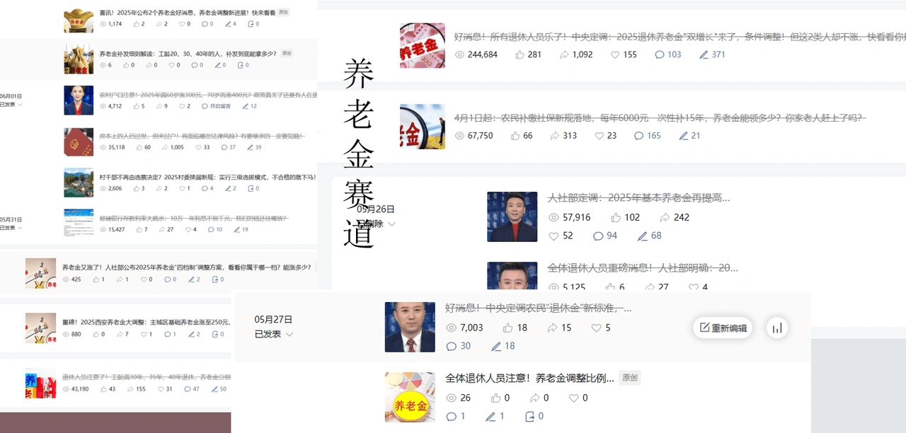 • 小绿书起号 + 转型爆款,适用于民生,养老,社会热点相关赛道。