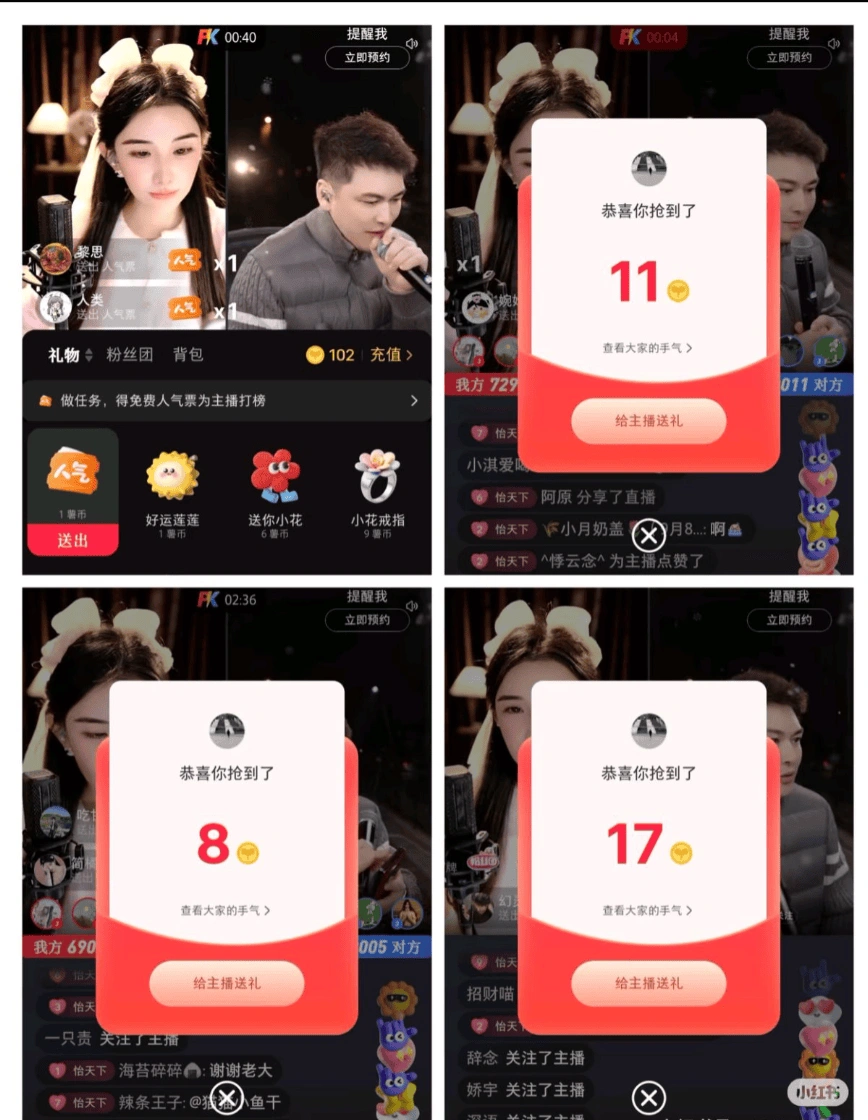 - 大号开播-小号送礼物给大号-大号提现