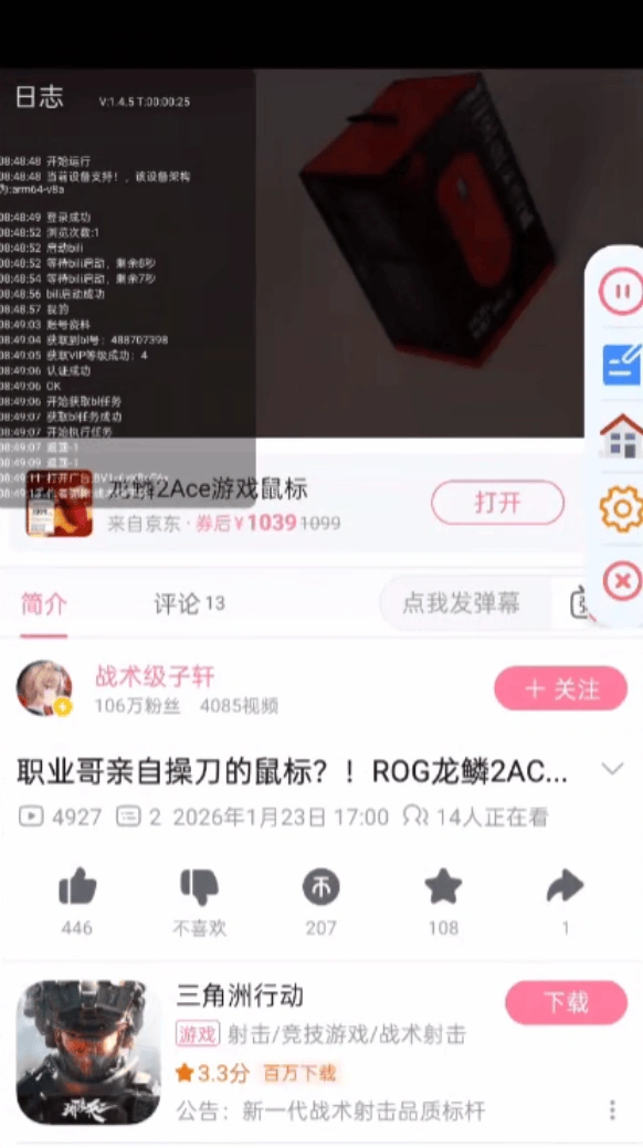 •  哔哩哔哩全自动挂机刷-短视频-点赞-点关注-评论-留痕
