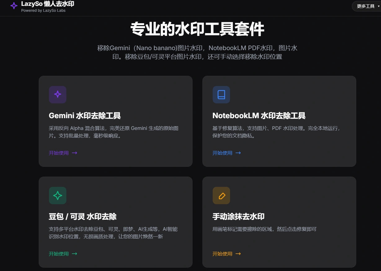 • 包括 Gemini(Nano banano)图片水印、NotebookLM PDF 水印、豆包与可灵平台图片水印等