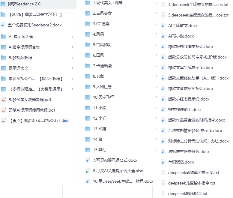 - 有视频教程、提示词文档、免费使用Seedance的地址整理