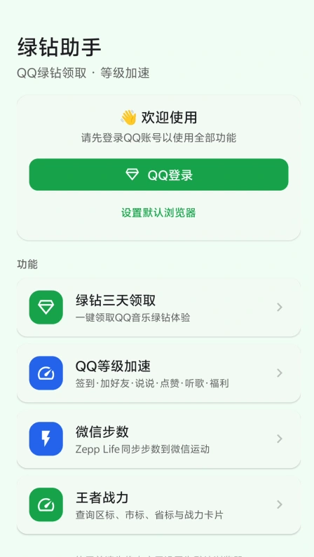 • 功能一:每个月领取3天QQ豪华绿钻